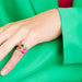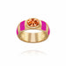 Bague de forme chevalière en or rose 18 carats ornée d'un saphir orange et composée d'un anneau travaillé avec de l'émail rose fuchsia.