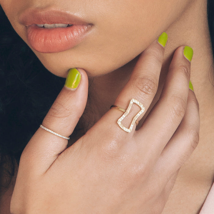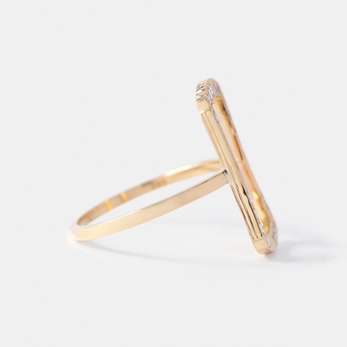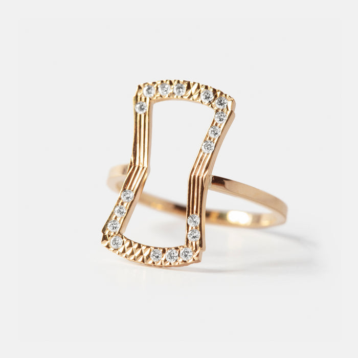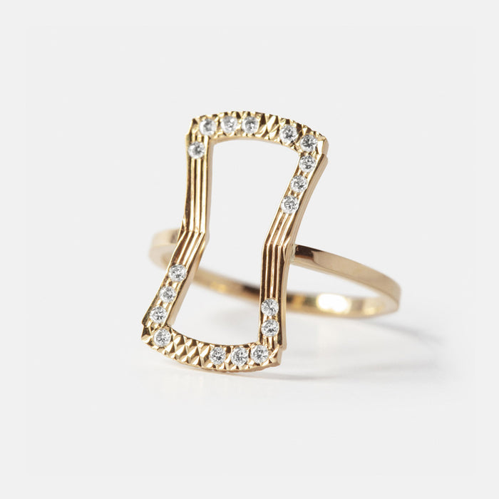 Bague Violette sculptée en or jaune et pavée de 18 diamants.