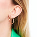 Ces boucles d'oreilles de forme créole sont aussi élégantes que singulières. L'anneau délicat est composé de sept interstices colorés d'émail de couleur corail et pavé de 16 diamants pour apporter de l'éclat.